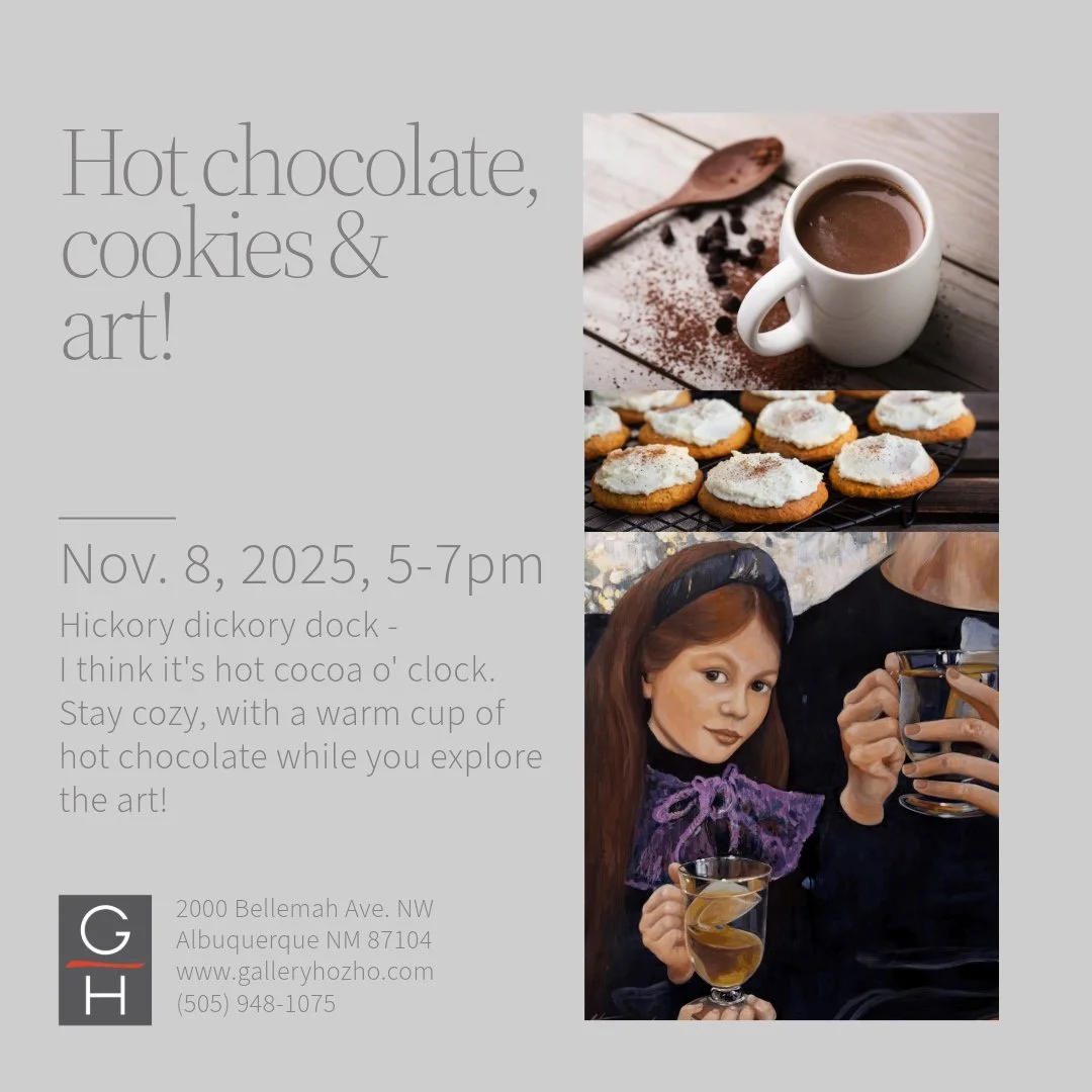 Join us at Gallery Hózhó for a warm and welcoming evening of hot chocolate, cookies, and art by local New Mexican artists on November 8, 2025 from 5pm to 7pm. Enjoy artwork by talented artists and build your own hot cup of cocoa and savor a seasonal treat of pumpkin cookies.
