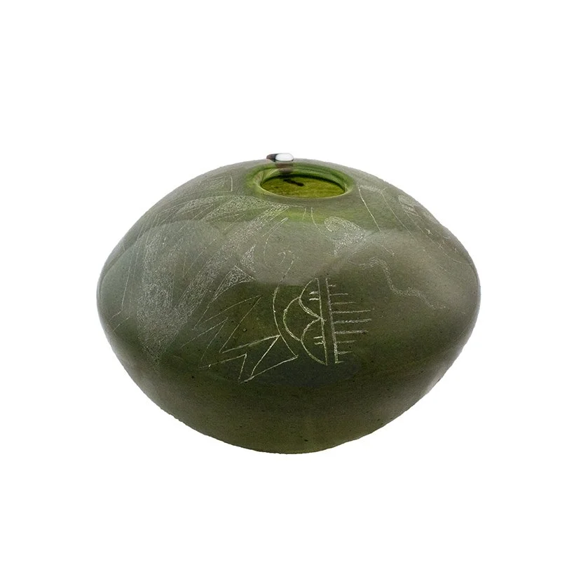 Animals and geometric patterns serve as the thematic foundation of my work. The inclusion of animals fosters a connection with viewers on a profound, yet subtle, level. Glass, with its futuristic allure, has always fascinated me, and this collection stands as a testament to the fusion of traditional craftsmanship with contemporary artistry. The integration of silver foil in my fused plates adds a distinctive touch. The process of crafting collages with silver, followed by the permanence achieved through firing, results in a unique visual experience. My color palette draws inspiration from pueblo pottery, rocks, and weathered surfaces, infusing each piece with a harmonious blend of tradition and innovation. All fused glass plates come equipped with stands for wall mounting or placement on pedestals, offering flexibility in exhibition layout. Hand-blown vessels are ideally suited for display on tables or pedestals. I am eager to share this collection, where craftsmanship meets storytelling, and traditional elements converge with contemporary design. This exhibition promises a visual journey that invites viewers to connect with the familiar and explore the allure of glass as a medium of artistic expression