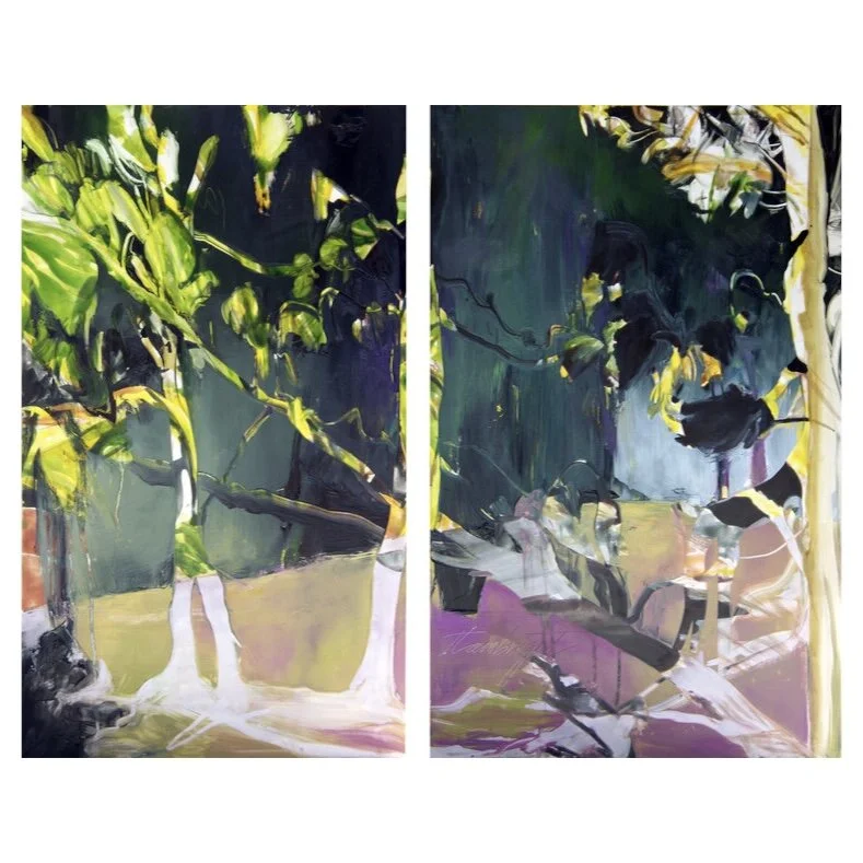 Julia Lambright at Gallery Hózhó › Julia Lambright, Flourishing Night of Green Thoughts (Diptych) Image 1 of 2 Image 2 of 2 Julia Lambright, Flourishing Night of Green Thoughts (Diptych) $5,300.00 2021, Egg tempera and oil paint30” x 20” each Add To Cart Added! 2021, Egg tempera and oil paint30” x 20” each